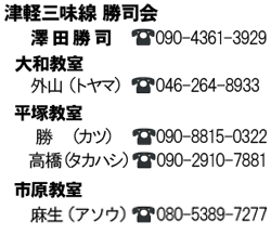 - 神奈川県は大和・平塚、千葉県は市原で津軽三味線教室を開いています。